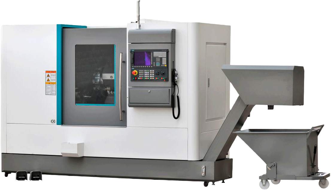Наклонная станина обеспечивает более компактную и технологичную конструкцию. Обычно такие станки оснащаются многопозиционной револьверной головкой или приводным инструментом, что позволяет выполнять многооперационную обработку с высокой точностью и скоростью.